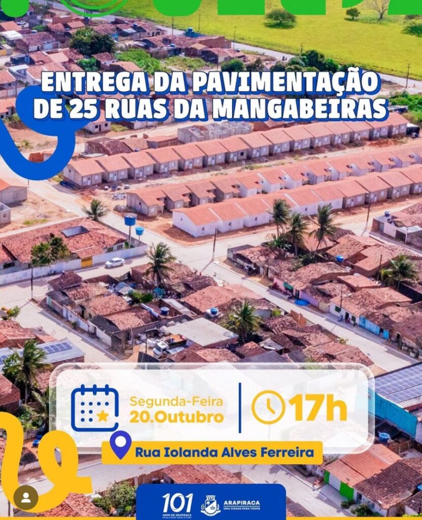 Redação com Assessoria Nesta segunda-feira, 20 de outubro, às 17 horas, estaremos entregando 25 ruas pavimentadas na região historicamente mais carente de Arapiraca. Onde existia um lixão com catadores, haverá dignidade com 25 ruas pavimentadas, drenadas, com uma urbanização, o que inclui escola, creche e posto de saúde. Em breve estaremos entregando 100 casas, que […]