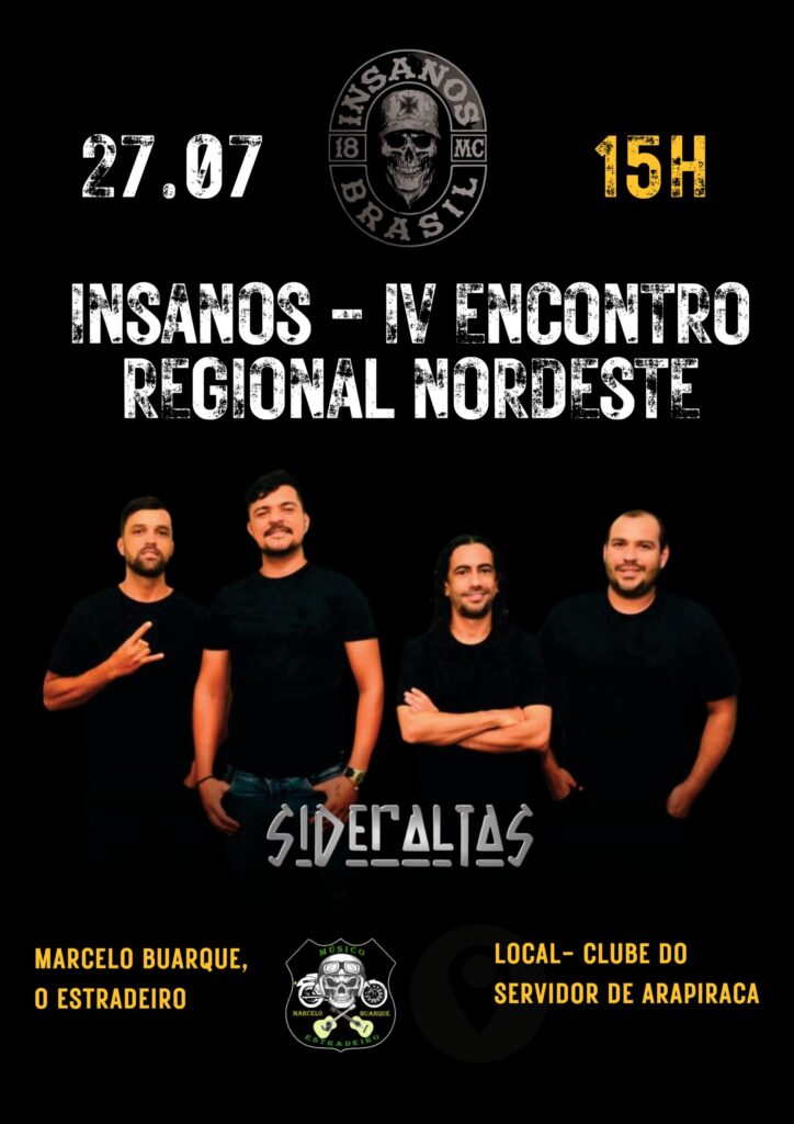 Integrantes do Nordeste de um dos maiores clubes de moto do mundo, o Insanos, estão promovendo o encontro da Regional IV neste final de semana, de 26 a 28 deste mês, no Clube do Servidor de Arapiraca.