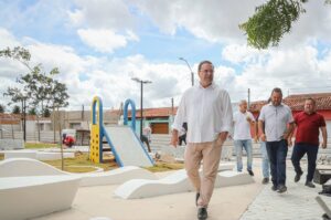 Acompanhado do secretário-executivo Vytor Ferro, do presidente da Câmara Municipal, Léo Saturnino, e dos vereadores Márcio do Canaã e Pablo Fênix, o prefeito Luciano seguiu para o bairro Canafístula, onde a gestão municipal está construindo um centro de convívio urbano e social em uma área com 1.100 m², sendo 800 m² de área verde e 300 m² destinados à convivência social.