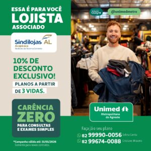 A parceria Sindilojas e Unimed Metropolitana do Agreste mostra na prática como o sindicato está sempre em movimento para desenvolver o comércio de Arapiraca, garantindo benefícios que fazem a diferença para empresários e comerciários.